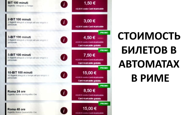 Но давайте рассмотрим, какая может быть еще цена на билеты в метро Рима, сколько стоит билет и какие билеты бывают.